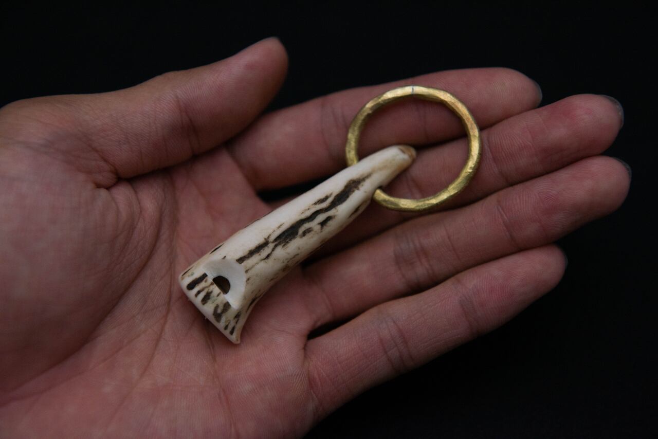 北海道の大自然に住む蝦夷鹿の抜け落ちた角を加工したホイッスル。